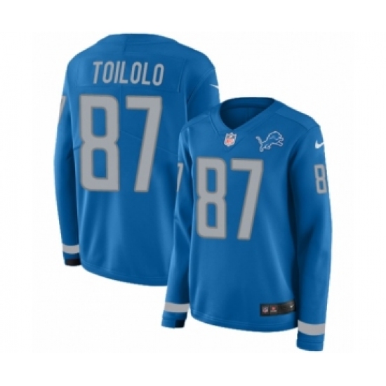 Women's Nike Detroit Lions #87 Levine Toilolo Limited Blue Therma Long Sleeve NFL Jersey