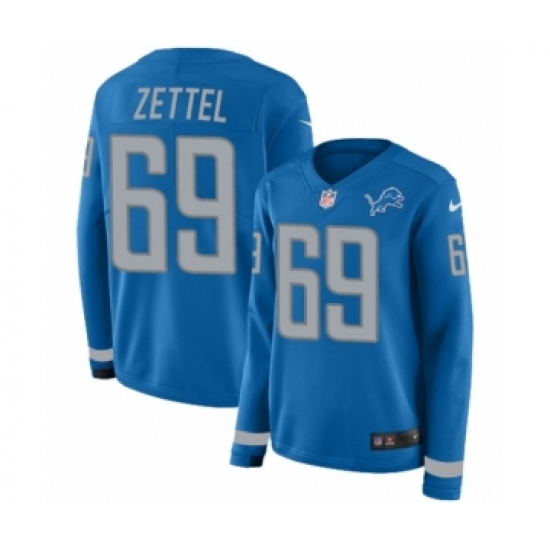>Women's Nike Detroit Lions #92 Sylvester Williams Limited Blue Therma Long Sleeve NFL Jersey