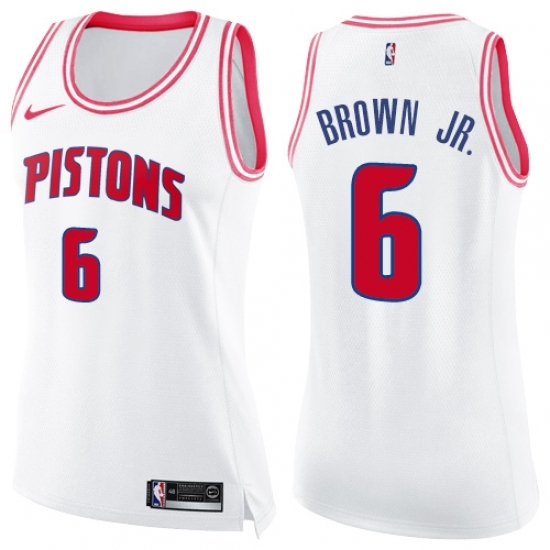 Women's Nike Detroit Pistons #6 Bruce Brown Jr. Swingman White Pink Fashion NBA Jersey