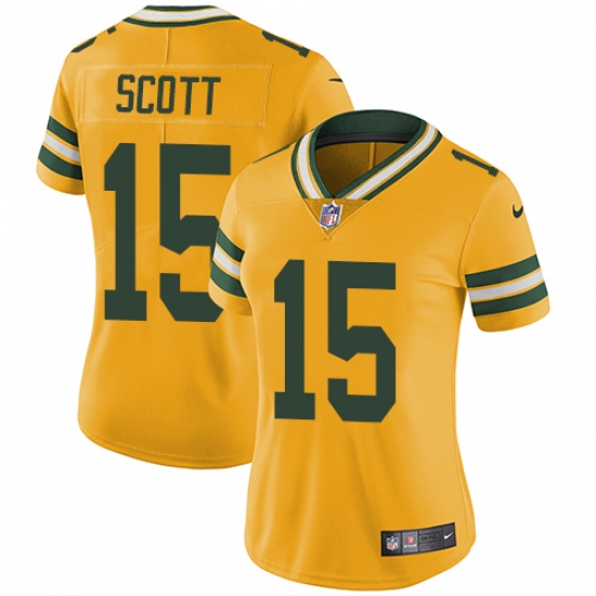 >Women's Nike Green Bay Packers #15 JK Scott Limited Gold Rush Vapor Untouchable NFL Jersey