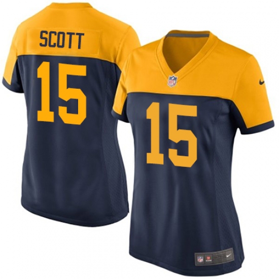 >Women's Nike Green Bay Packers #15 JK Scott Limited Navy Blue Alternate NFL Jersey