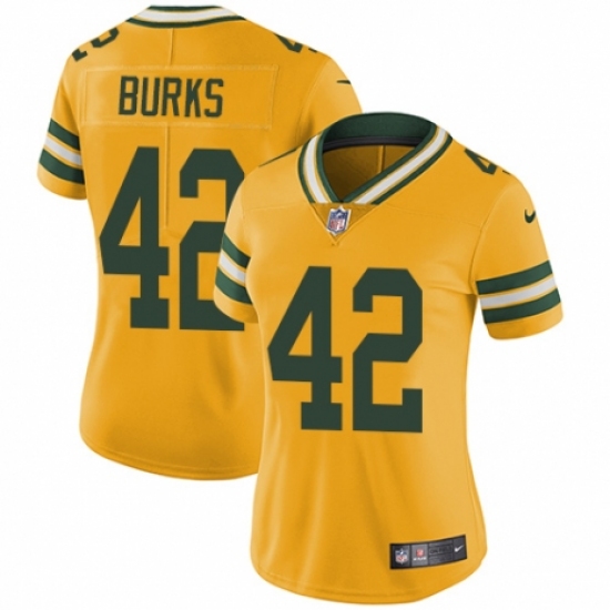 >Women's Nike Green Bay Packers #42 Oren Burks Limited Gold Rush Vapor Untouchable NFL Jersey