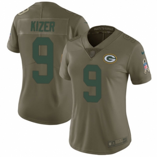 >Women's Nike Green Bay Packers #9 DeShone Kizer Limited Olive 2017 Salute to Service NFL Jersey