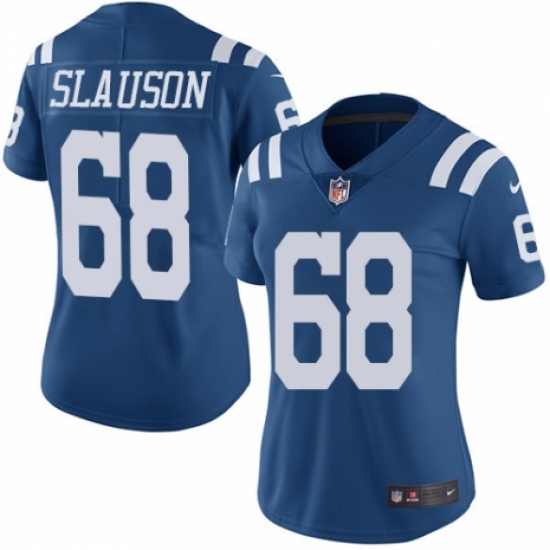 >Women's Nike Indianapolis Colts #68 Matt Slauson Limited Royal Blue Rush Vapor Untouchable NFL Jersey