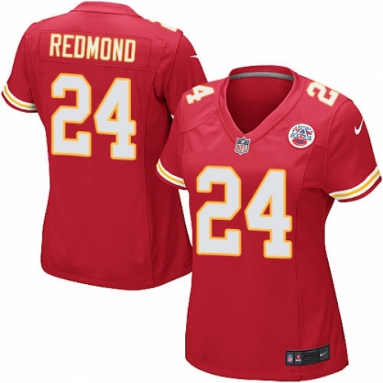 >Women's Nike Kansas City Chiefs #24 Will Redmond Game Red Team Color NFL Jersey
