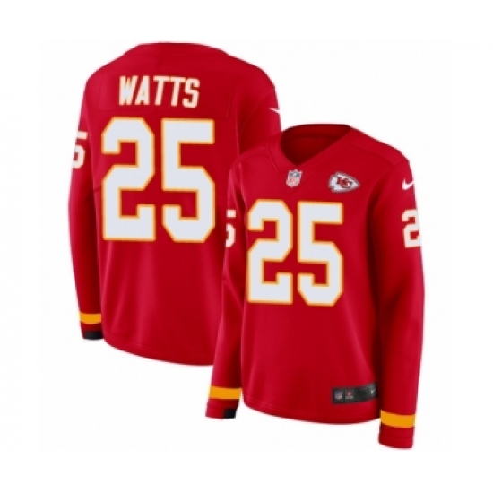 >Women's Nike Kansas City Chiefs #25 Armani Watts Limited Red Therma Long Sleeve NFL Jersey