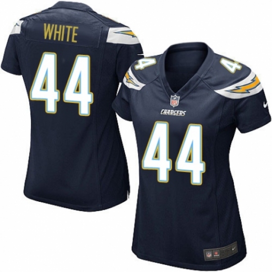 >Women's Nike Los Angeles Chargers #44 Kyzir White Game Navy Blue Team Color NFL Jersey