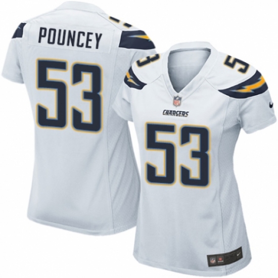 >Women's Nike Los Angeles Chargers #53 Mike Pouncey Game White NFL Jersey