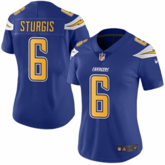 >Women's Nike Los Angeles Chargers #6 Caleb Sturgis Limited Electric Blue Rush Vapor Untouchable NFL Jersey
