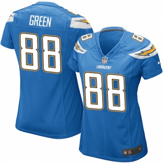 >Women's Nike Los Angeles Chargers #88 Virgil Green Game Electric Blue Alternate NFL Jersey