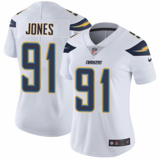 Women's Nike Los Angeles Chargers #91 Justin Jones White Vapor Untouchable Limited Player NFL Jersey