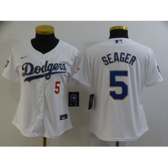 >Women's Nike Los Angeles Dodgers #5 Corey Seager White Series Champions Jersey