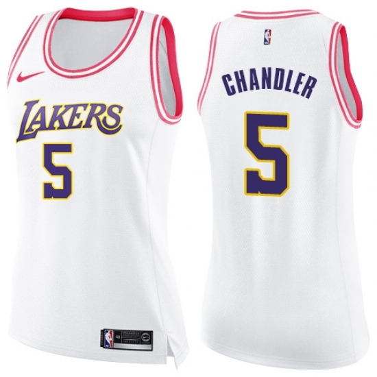 Women's Nike Los Angeles Lakers #5 Tyson Chandler Swingman White Pink Fashion NBA Jersey
