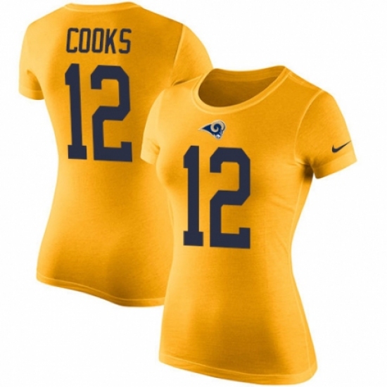>Women's Nike Los Angeles Rams #12 Brandin Cooks Gold Rush Pride Name & Number T-Shirt