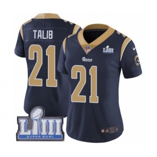 Women's Nike Los Angeles Rams #21 Aqib Talib Navy Blue Team Color Vapor Untouchable Limited Player Super Bowl LIII Bound NFL Jerseyey
