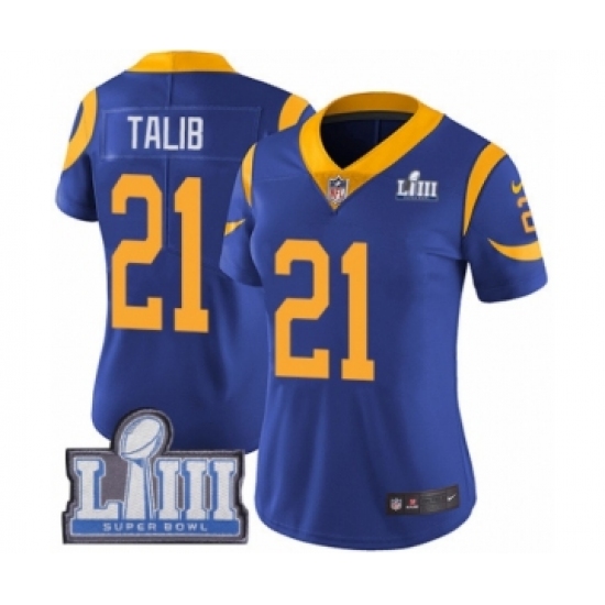 >Women's Nike Los Angeles Rams #21 Aqib Talib Royal Blue Alternate Vapor Untouchable Limited Player Super Bowl LIII Bound NFL Jersey