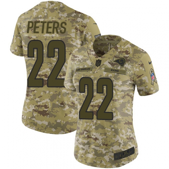 >Women's Nike Los Angeles Rams #22 Marcus Peters Limited Camo 2018 Salute to Service NFL Jersey