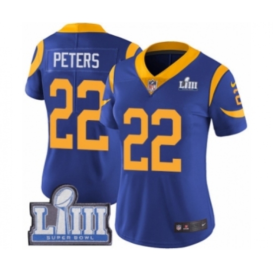 Women's Nike Los Angeles Rams #22 Marcus Peters Royal Blue Alternate Vapor Untouchable Limited Player Super Bowl LIII Bound NFL Jersey