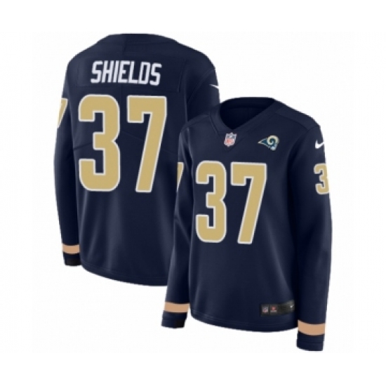 >Women's Nike Los Angeles Rams #37 Sam Shields Limited Navy Blue Therma Long Sleeve NFL Jersey