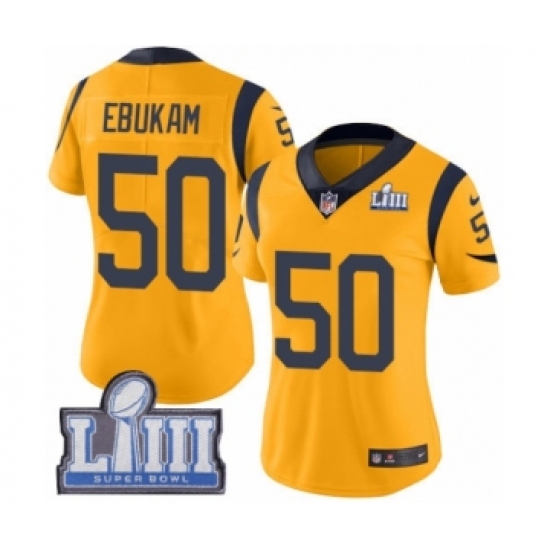 >Women's Nike Los Angeles Rams #50 Samson Ebukam Limited Gold Rush Vapor Untouchable Super Bowl LIII Bound NFL Jersey
