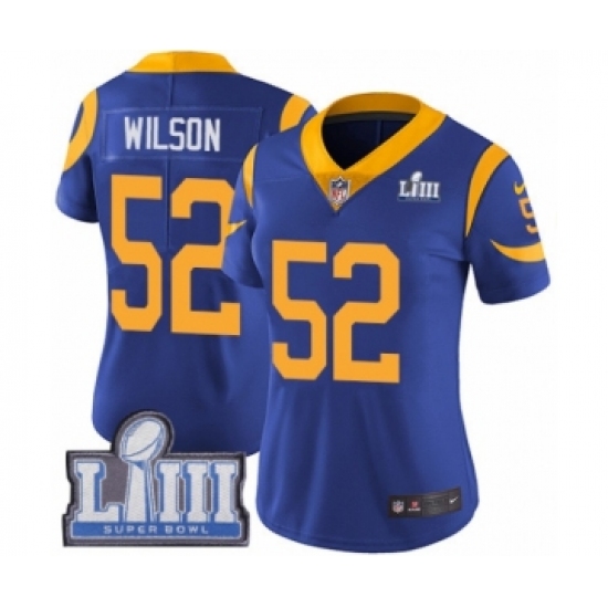>Women's Nike Los Angeles Rams #52 Ramik Wilson Royal Blue Alternate Vapor Untouchable Limited Player Super Bowl LIII Bound NFL Jersey