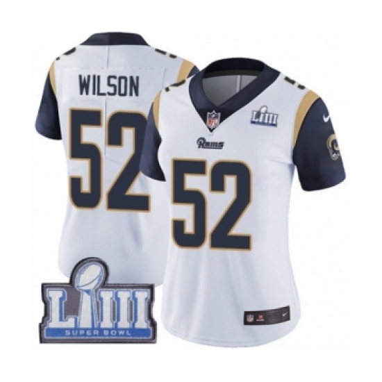 >Women's Nike Los Angeles Rams #52 Ramik Wilson White Vapor Untouchable Limited Player Super Bowl LIII Bound NFL Jersey