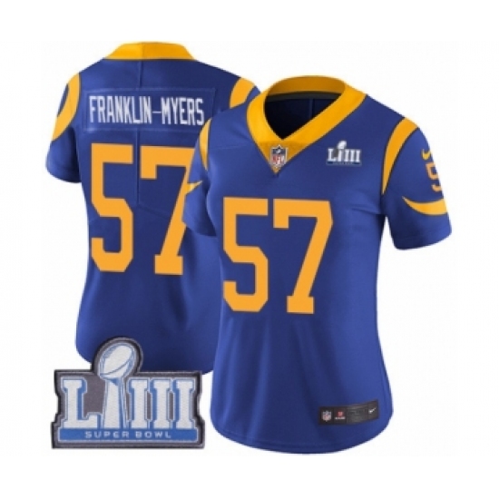>Women's Nike Los Angeles Rams #57 John Franklin-Myers Royal Blue Alternate Vapor Untouchable Limited Player Super Bowl LIII Bound NFL Jersey