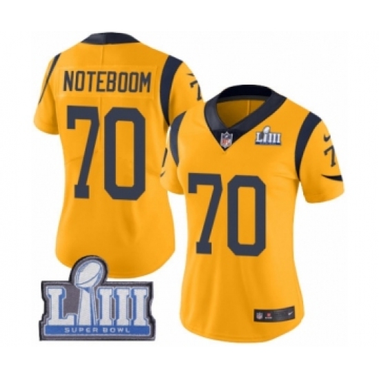 >Women's Nike Los Angeles Rams #70 Joseph Noteboom Limited Gold Rush Vapor Untouchable Super Bowl LIII Bound NFL Jersey