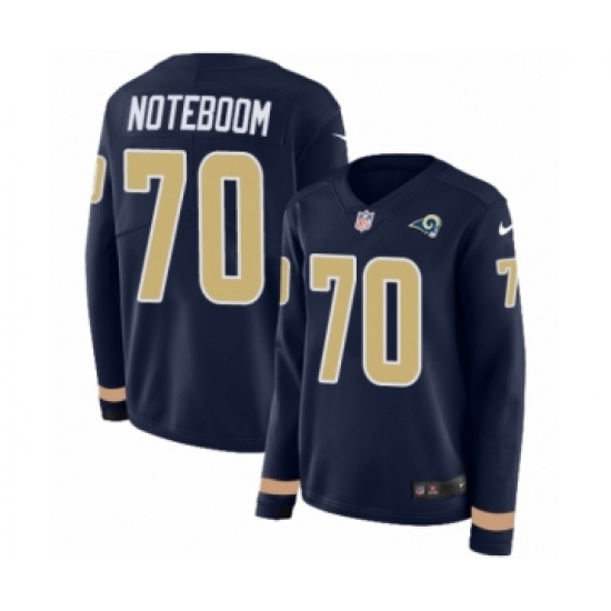 >Women's Nike Los Angeles Rams #70 Joseph Noteboom Limited Navy Blue Therma Long Sleeve NFL Jersey