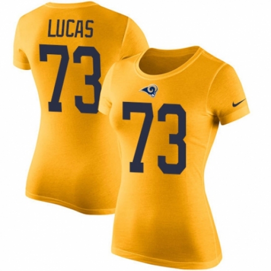 >Women's Nike Los Angeles Rams #73 Cornelius Lucas Gold Rush Pride Name & Number T-Shirt