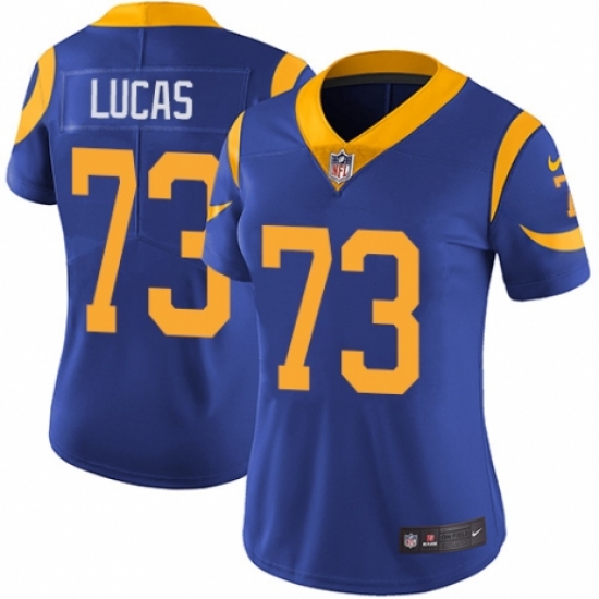 >Women's Nike Los Angeles Rams #73 Cornelius Lucas Royal Blue Alternate Vapor Untouchable Limited Player NFL Jersey