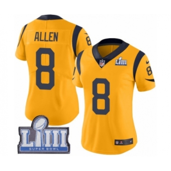 >Women's Nike Los Angeles Rams #8 Brandon Allen Limited Gold Rush Vapor Untouchable Super Bowl LIII Bound NFL Jersey
