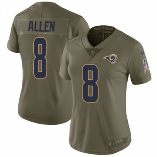 >Women's Nike Los Angeles Rams #8 Brandon Allen Limited Olive 2017 Salute to Service NFL Jersey
