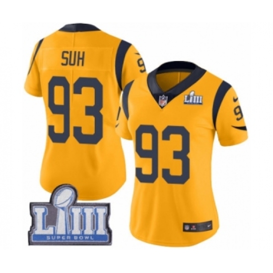>Women's Nike Los Angeles Rams #93 Ndamukong Suh Limited Gold Rush Vapor Untouchable Super Bowl LIII Bound NFL Jersey