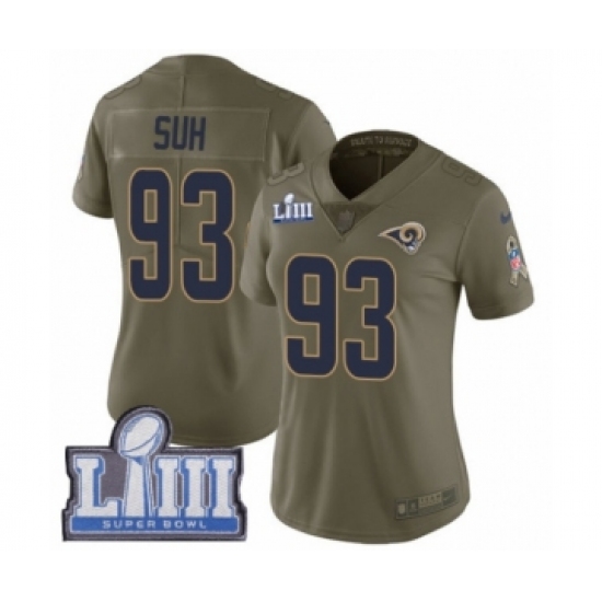 Women's Nike Los Angeles Rams #93 Ndamukong Suh Limited Olive 2017 Salute to Service Super Bowl LIII Bound NFL Jersey