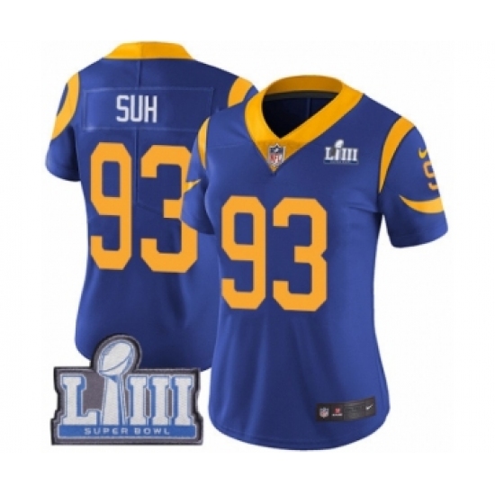 Women's Nike Los Angeles Rams #93 Ndamukong Suh Royal Blue Alternate Vapor Untouchable Limited Player Super Bowl LIII Bound NFL Jersey