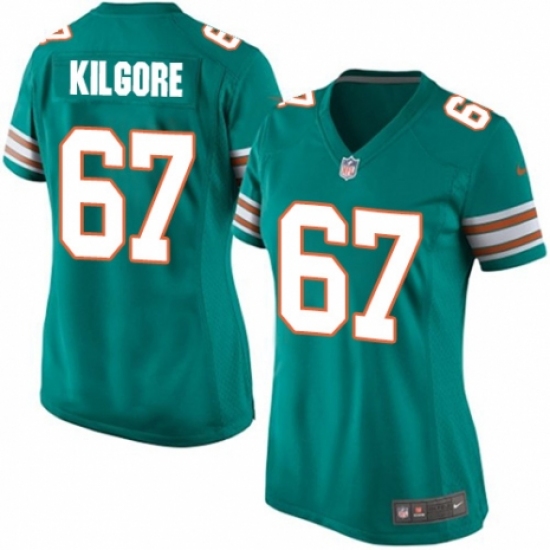 Women's Nike Miami Dolphins #67 Daniel Kilgore Game Aqua Green Alternate NFL Jersey