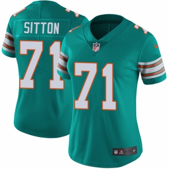 Women's Nike Miami Dolphins #71 Josh Sitton Aqua Green Alternate Vapor Untouchable Limited Player NFL Jersey
