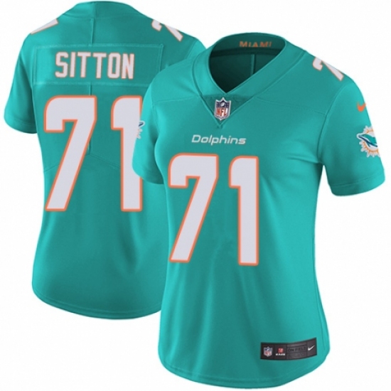 Women's Nike Miami Dolphins #71 Josh Sitton Aqua Green Team Color Vapor Untouchable Elite Player NFL Jersey