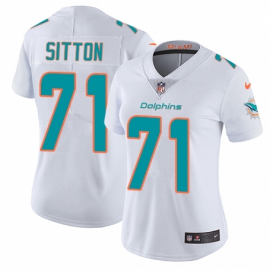 Women's Nike Miami Dolphins #71 Josh Sitton White Vapor Untouchable Limited Player NFL Jersey