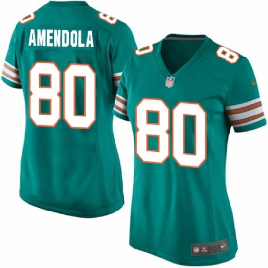 >Women's Nike Miami Dolphins #80 Danny Amendola Game Aqua Green Alternate NFL Jersey