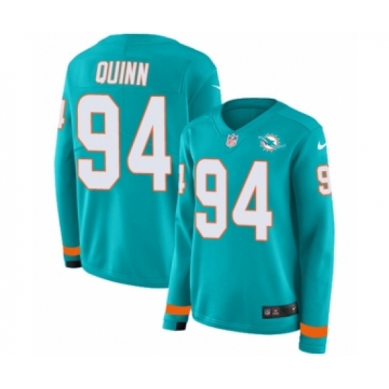 Women's Nike Miami Dolphins #94 Robert Quinn Limited Aqua Therma Long Sleeve NFL Jersey
