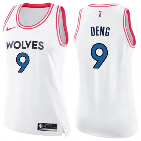 >Women's Nike Minnesota Timberwolves #9 Luol Deng Swingman White Pink Fashion NBA Jersey