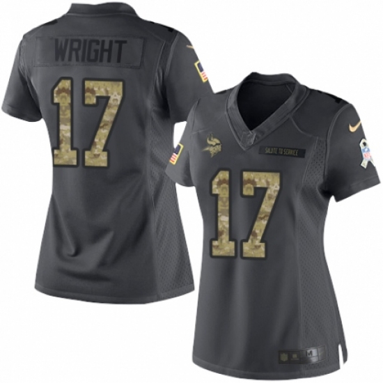 >Women's Nike Minnesota Vikings #17 Kendall Wright Limited Black 2016 Salute to Service NFL Jersey