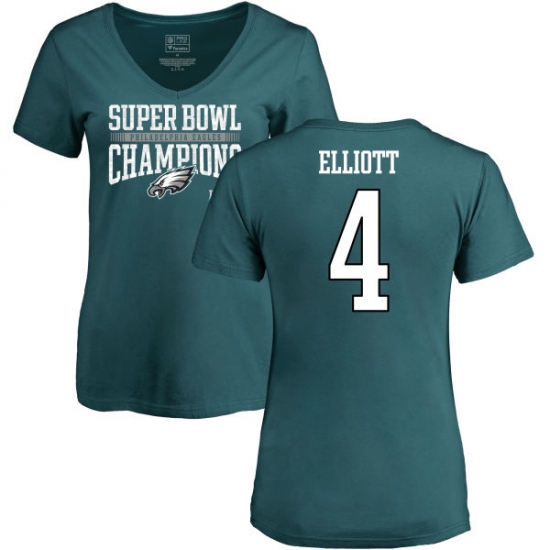 Women's Nike Philadelphia Eagles #4 Jake Elliott Green Super Bowl LII Champions V-Neck T-Shirt