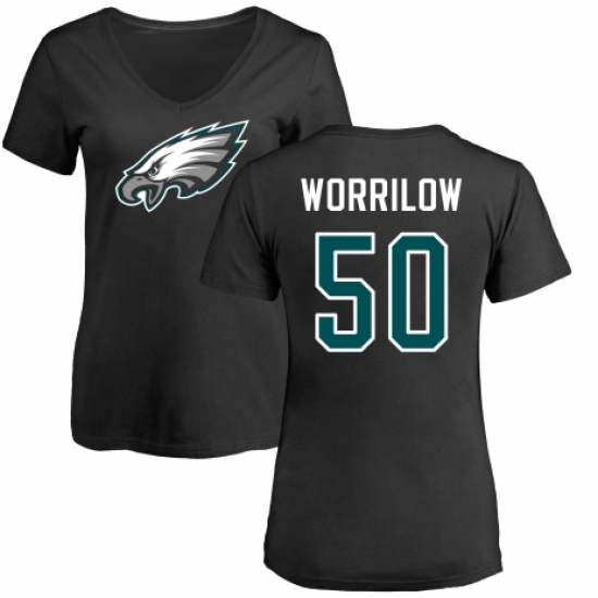 >Women's Nike Philadelphia Eagles #50 Paul Worrilow Black Name & Number Logo Slim Fit T-Shirt