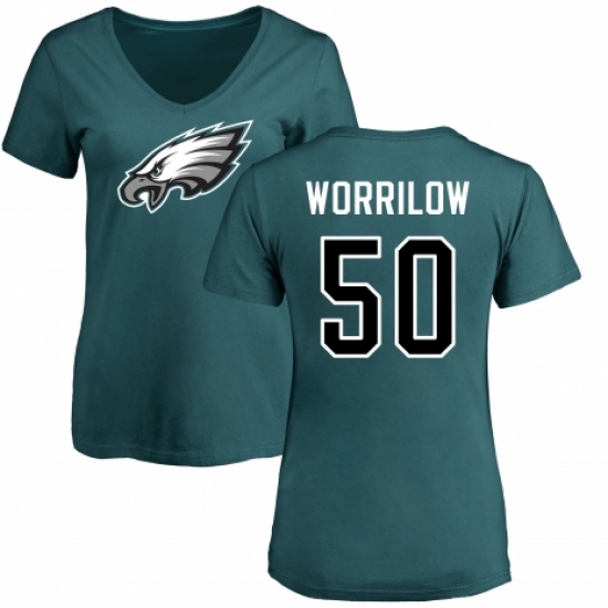 >Women's Nike Philadelphia Eagles #50 Paul Worrilow Green Name & Number Logo Slim Fit T-Shirt