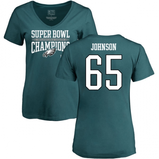 >Women's Nike Philadelphia Eagles #65 Lane Johnson Green Super Bowl LII Champions V-Neck T-Shirt