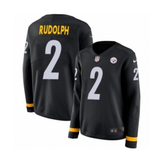 >Women's Nike Pittsburgh Steelers #2 Mason Rudolph Limited Black Therma Long Sleeve NFL Jersey