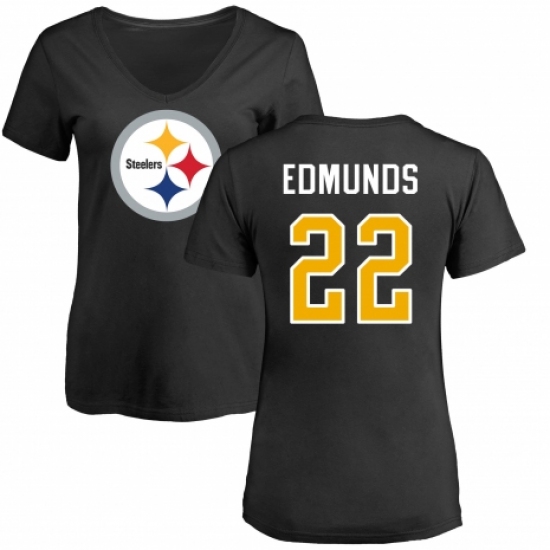 >Women's Nike Pittsburgh Steelers #22 Terrell Edmunds Black Name & Number Logo Slim Fit T-Shirt
